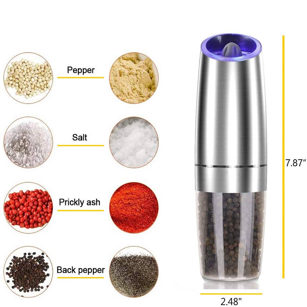 O moedor elétrico é adequado para pimenta, sal e outros temperos de grãos sólidos. Alimentado por bateria, conveniente e rápido, você pode usa-lo a qualquer hora e em qualquer lugar. Este moedor é o bom ajudante para cozinhas, restaurantes, festas e piqueniques ao ar livre.